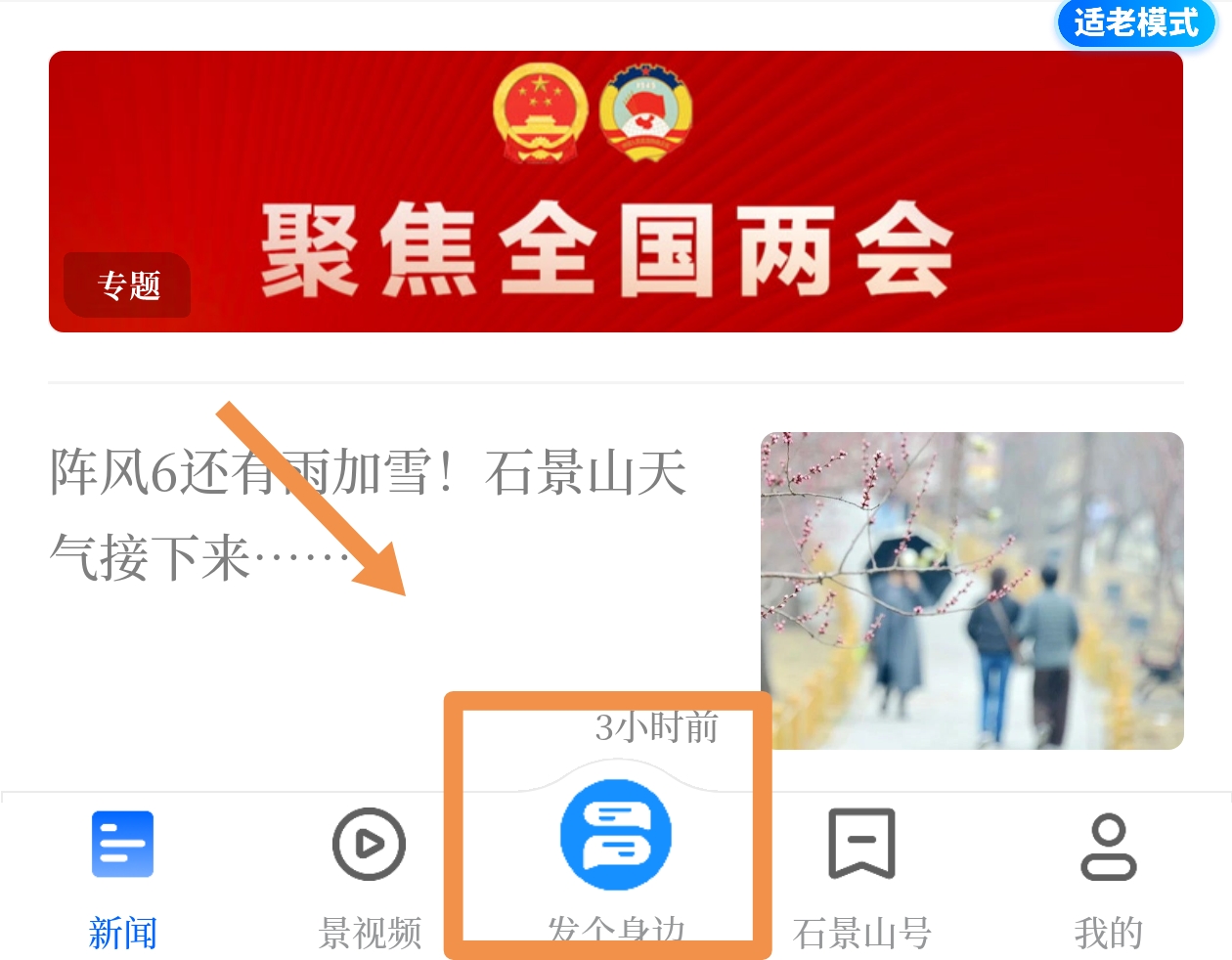 打开北京石景山客户端,点击【发个身边】