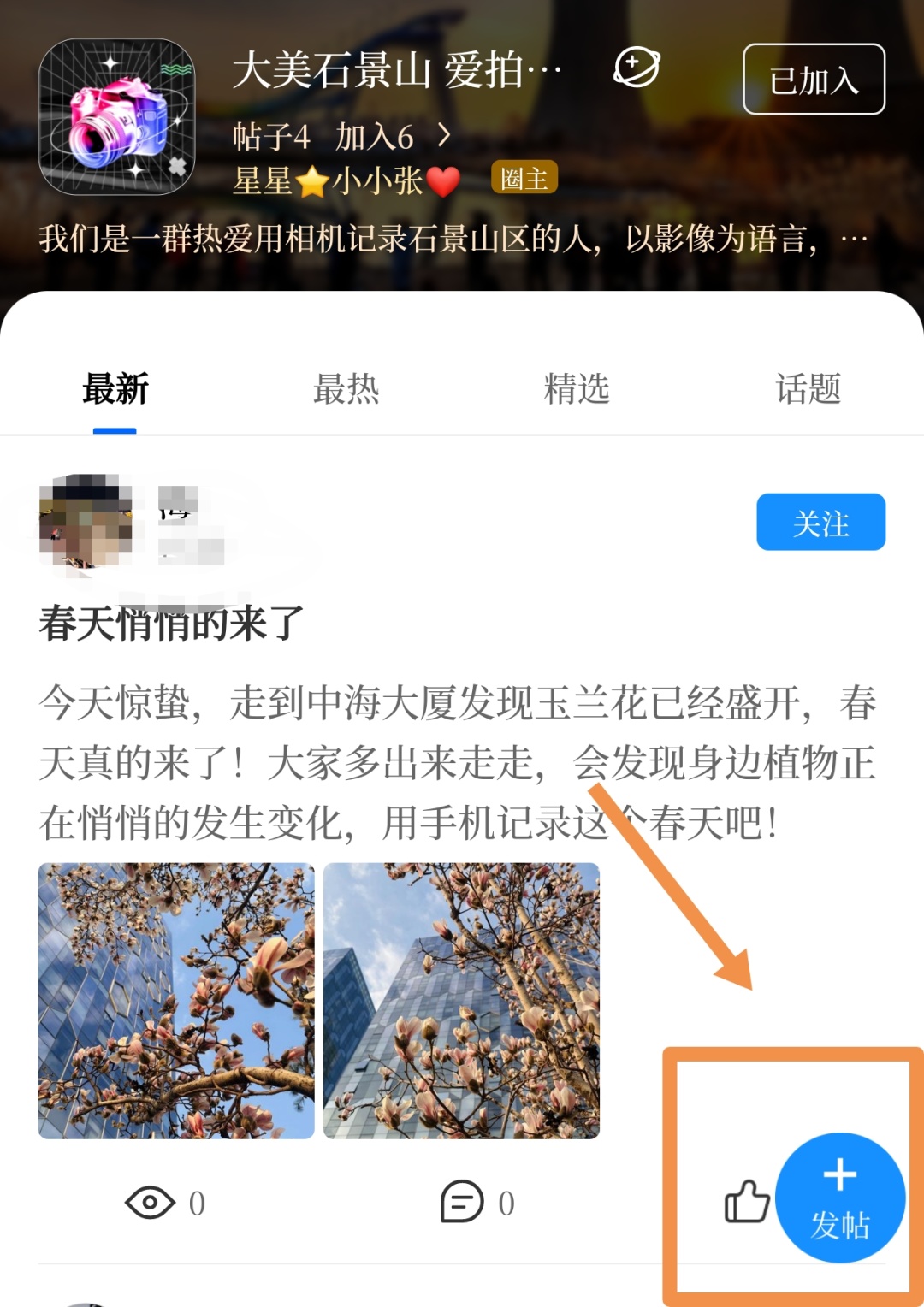 进入【大美石景山】话题入口,参与发帖