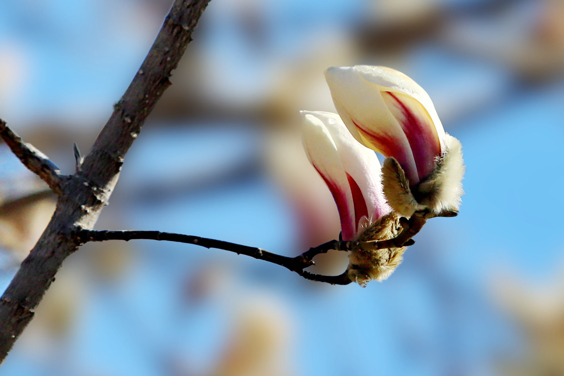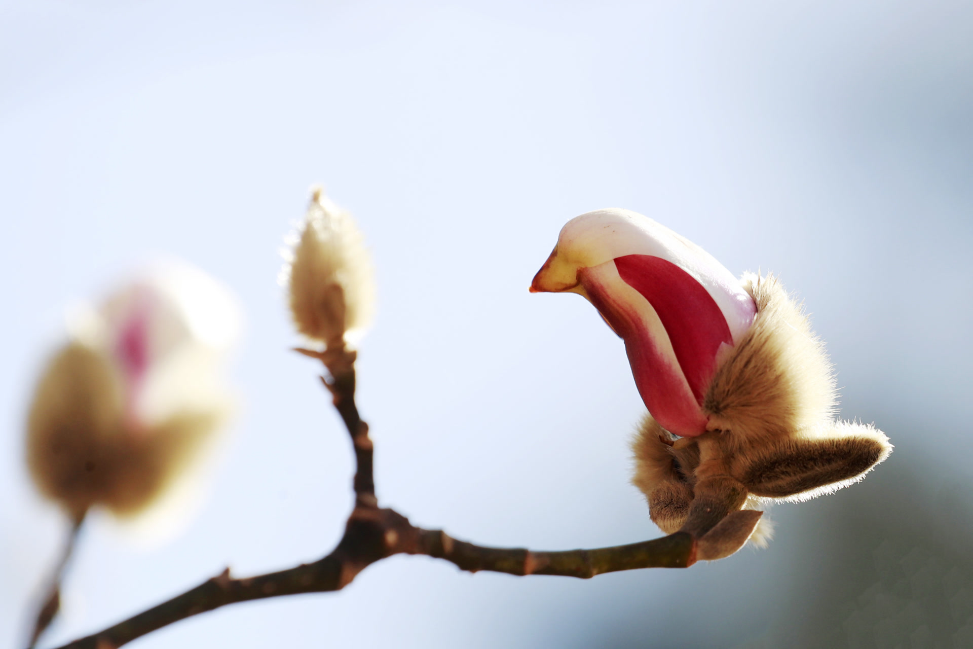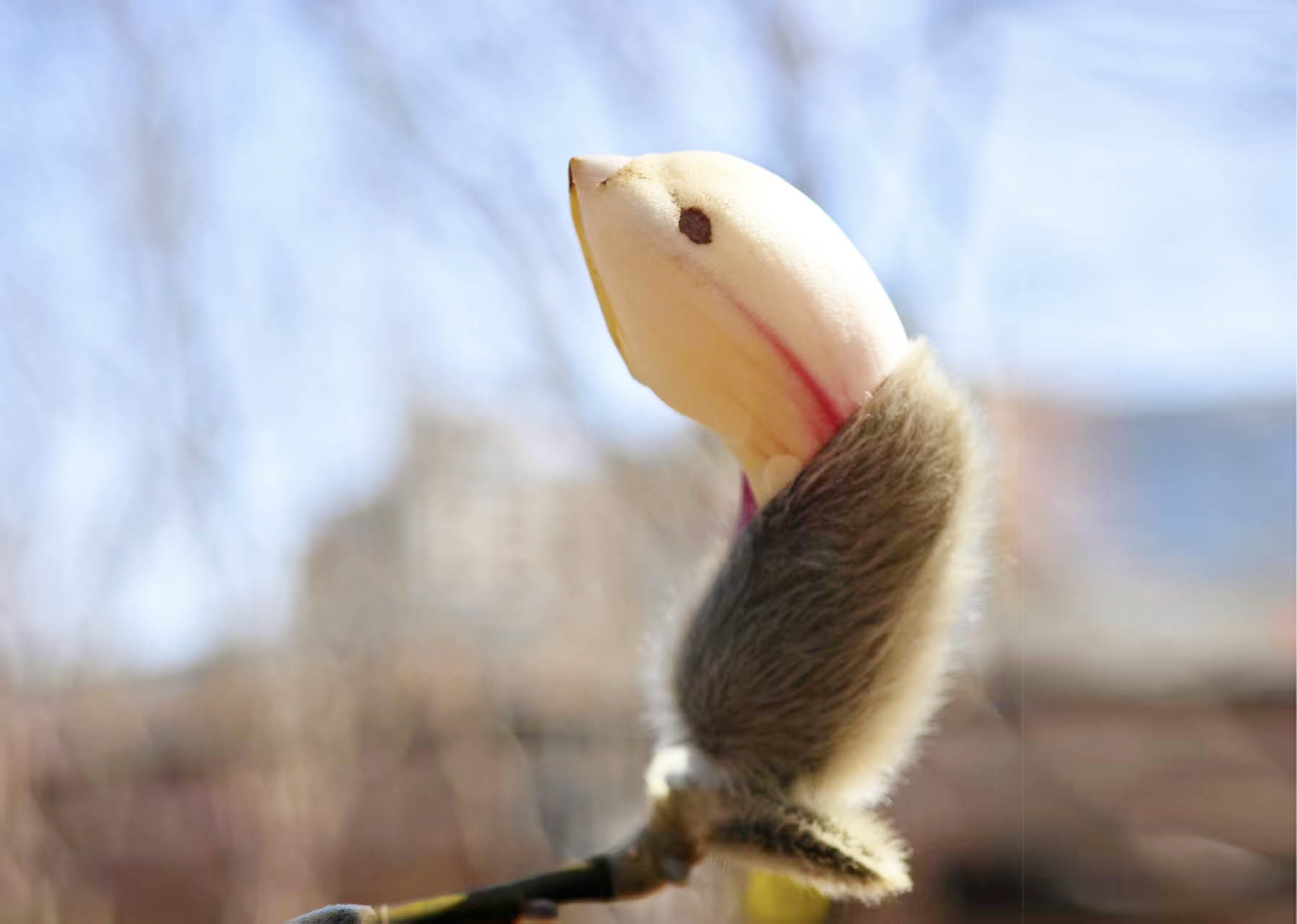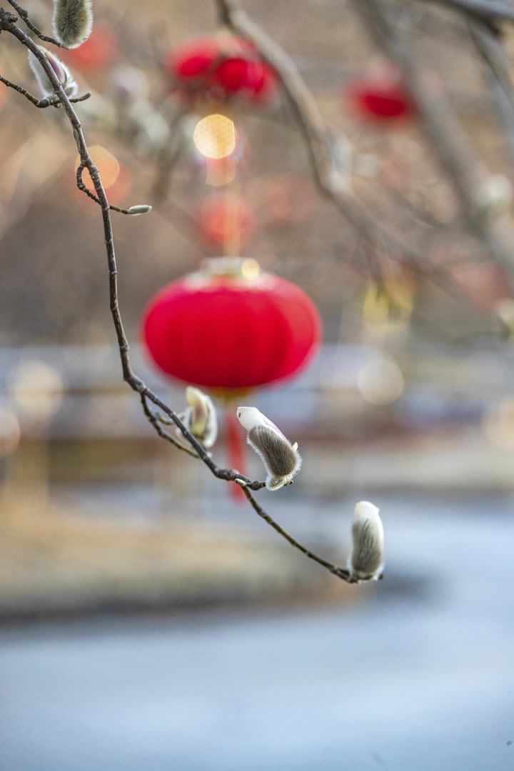 玉兰亭亭伫立枝头,花苞饱满雅致,静候春风唤醒,静待一树芳华。