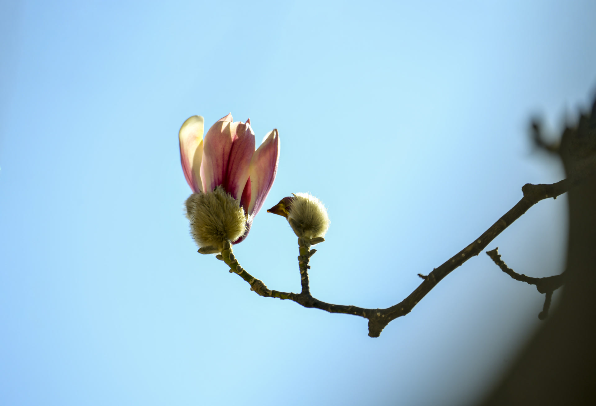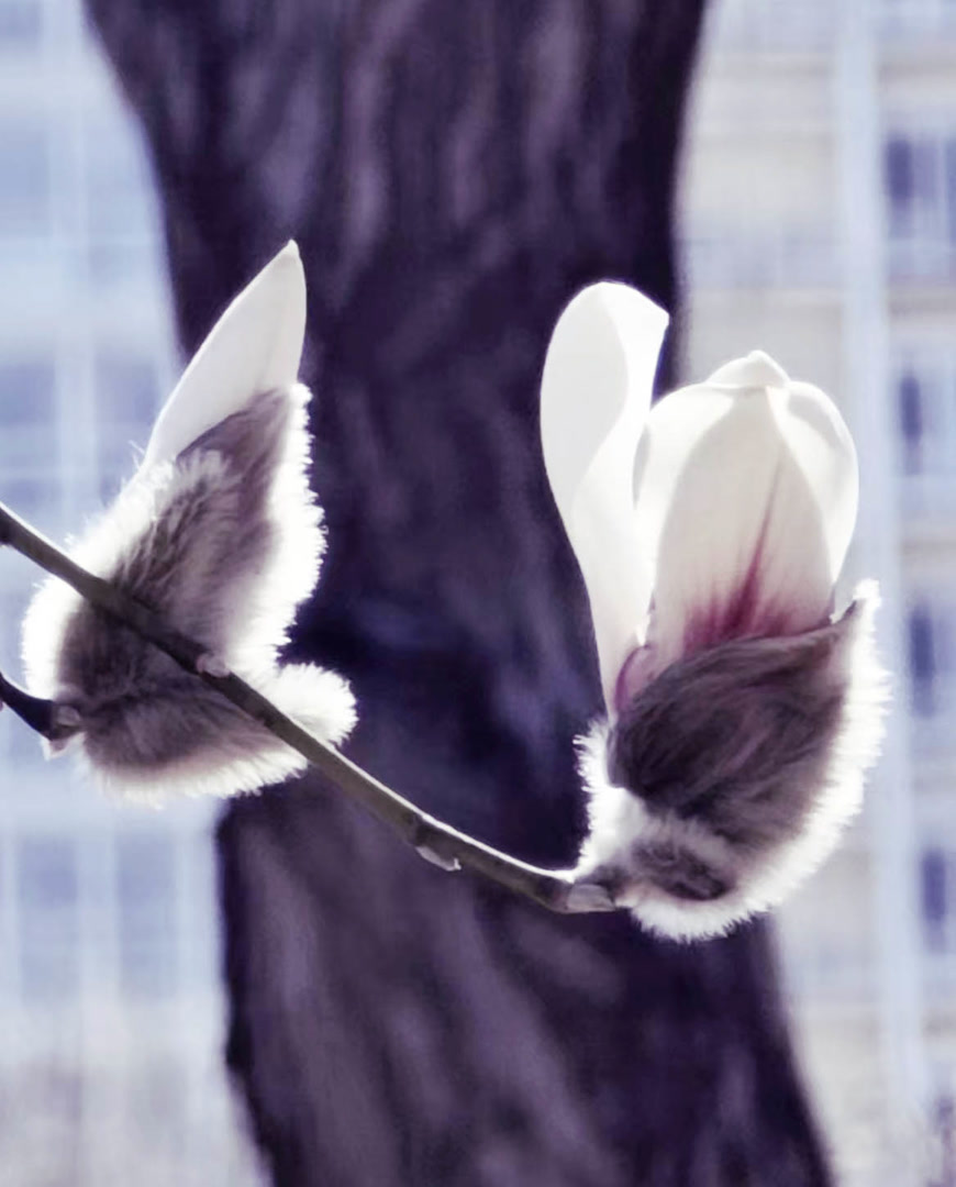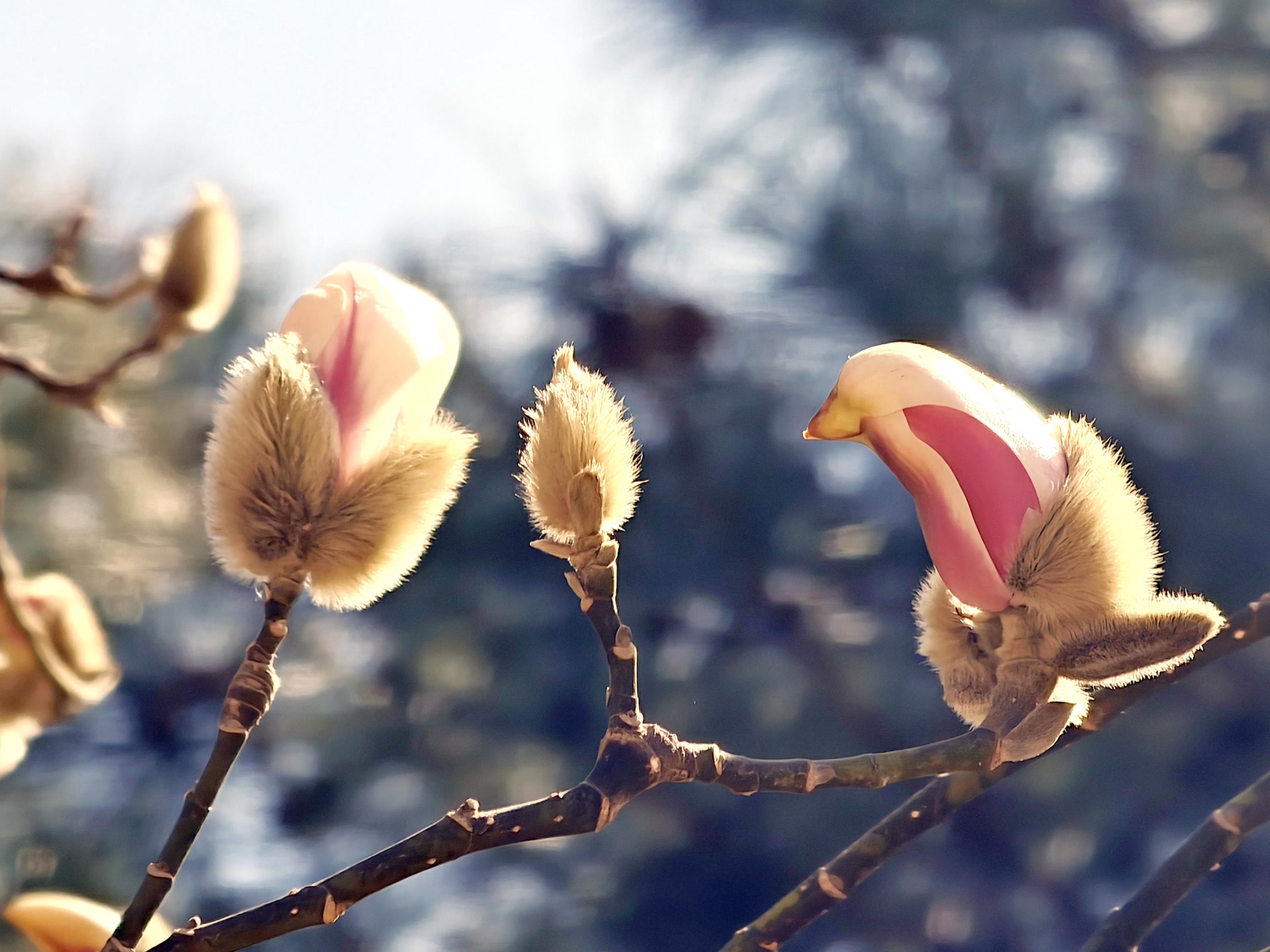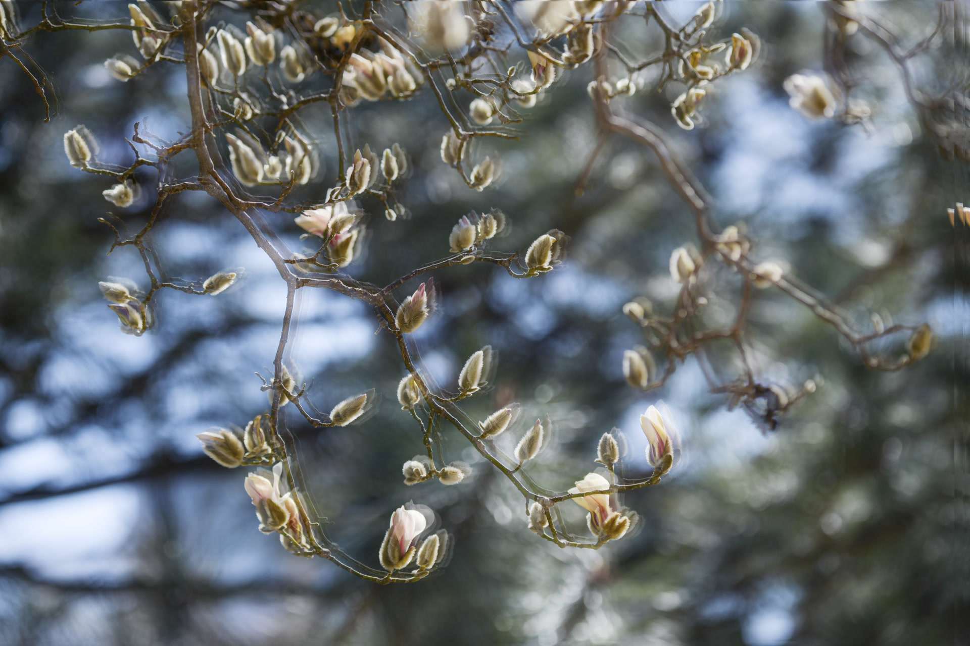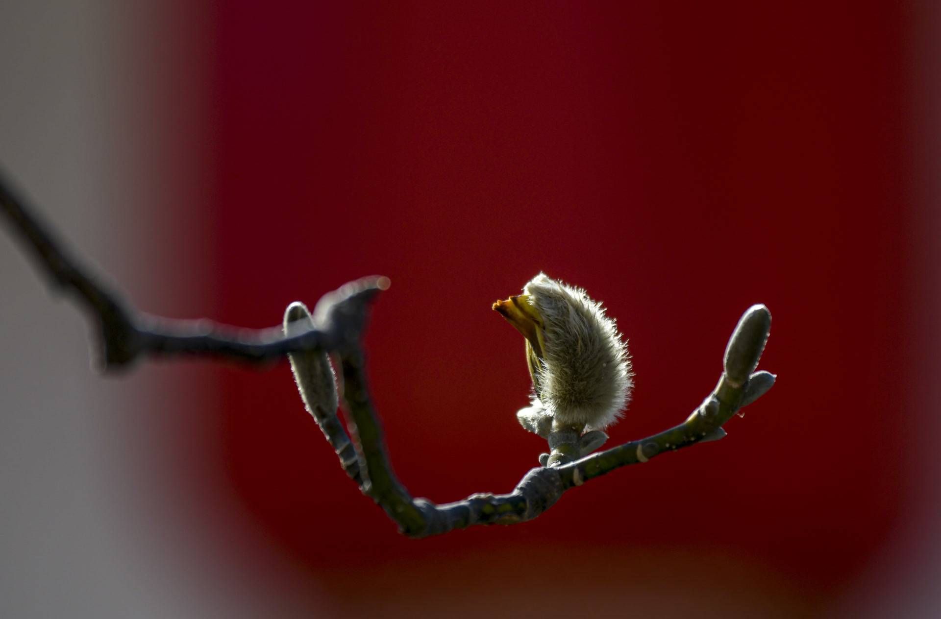 玉兰亭亭伫立枝头,花苞饱满雅致,静候春风唤醒,静待一树芳华。