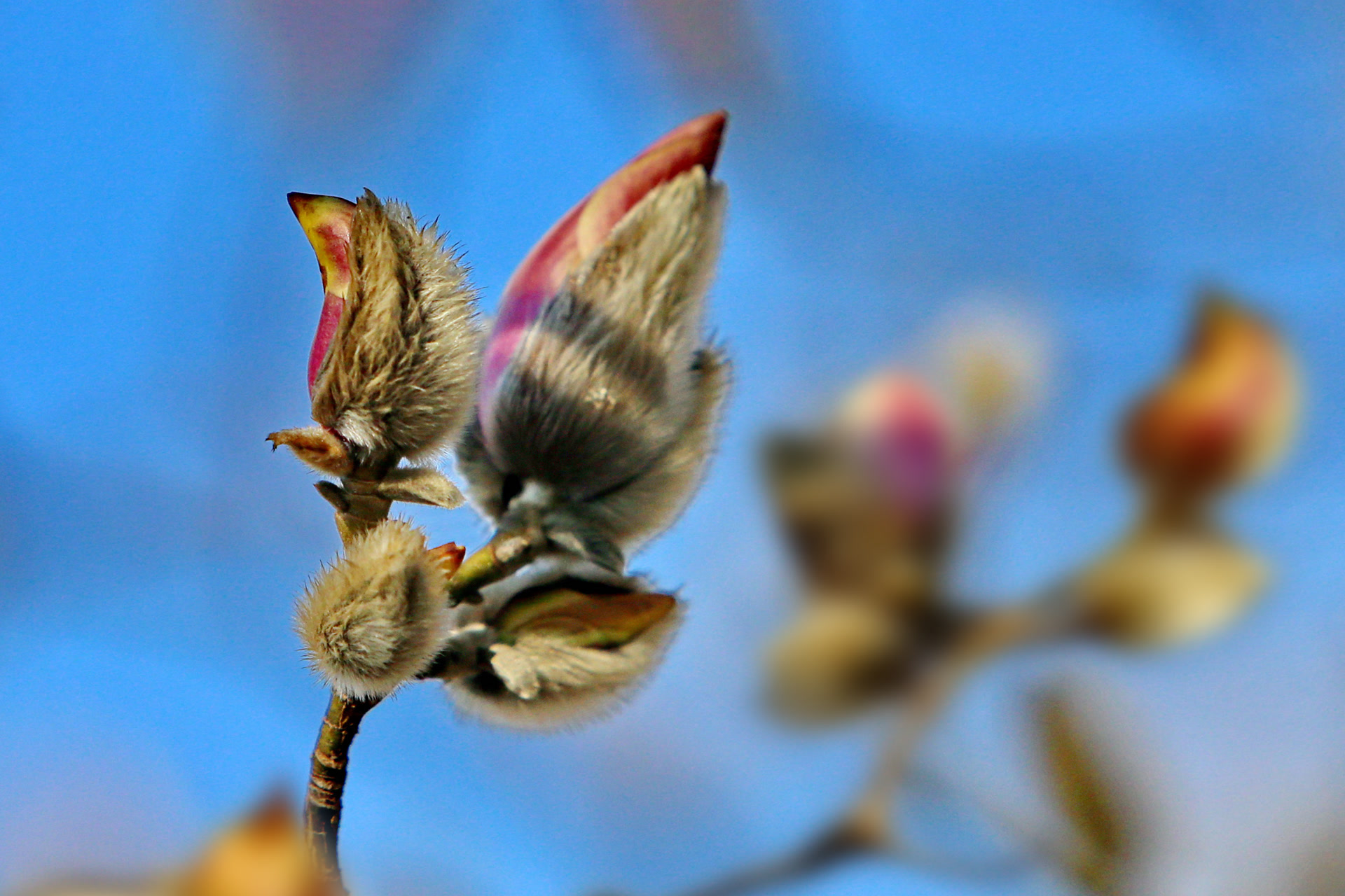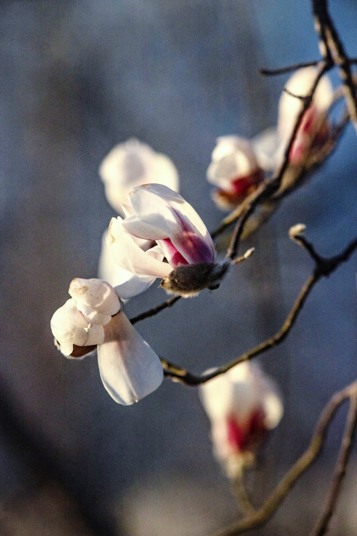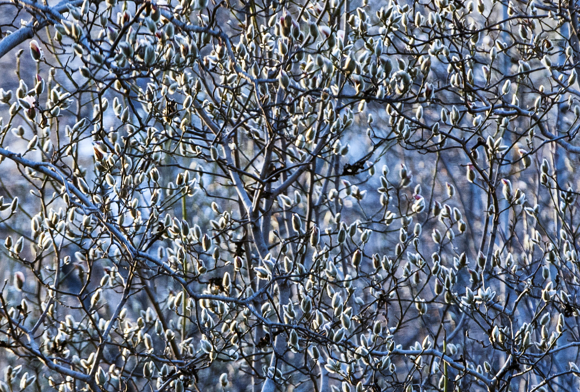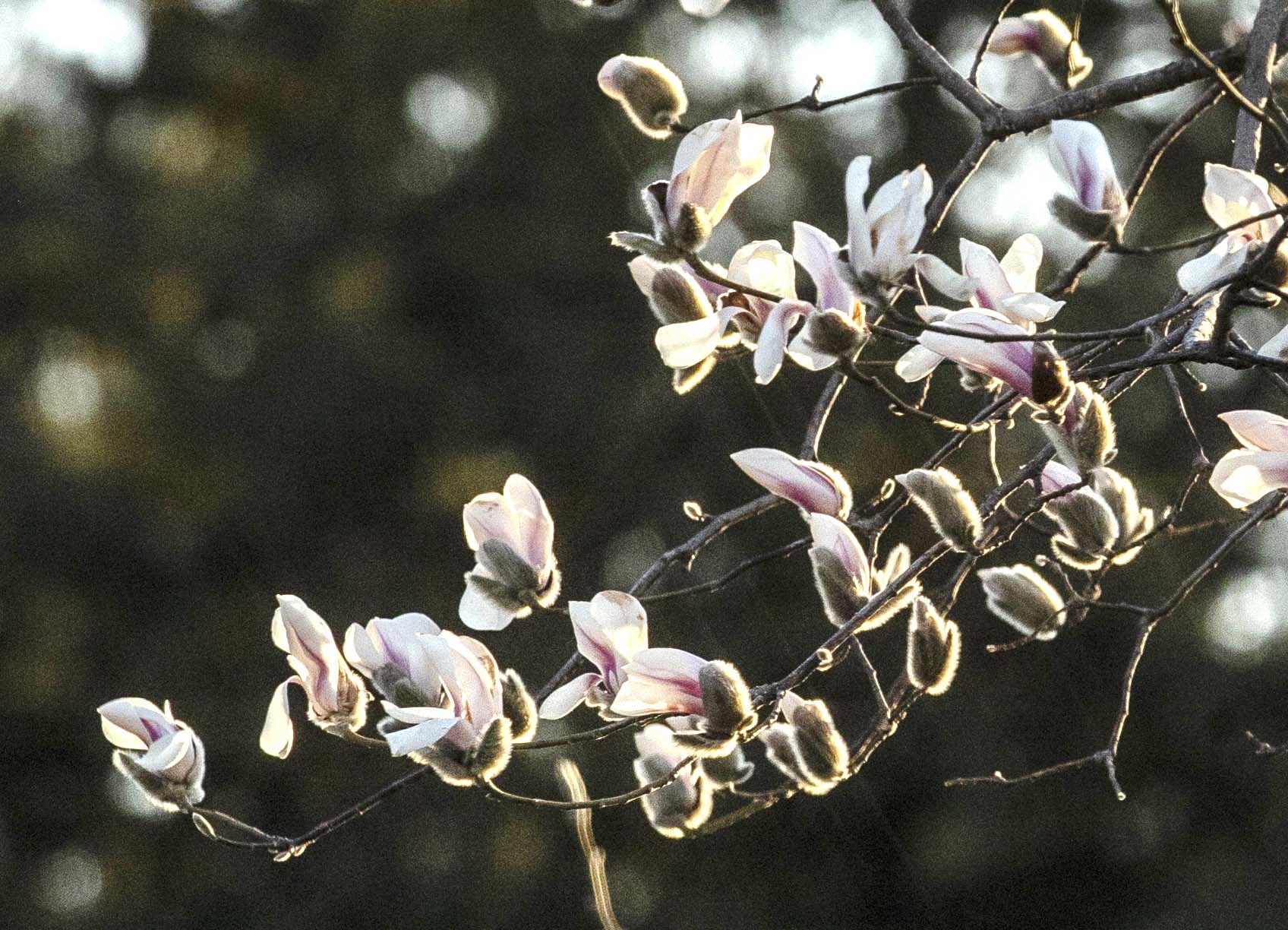 玉兰亭亭伫立枝头,花苞饱满雅致,静候春风唤醒,静待一树芳华。