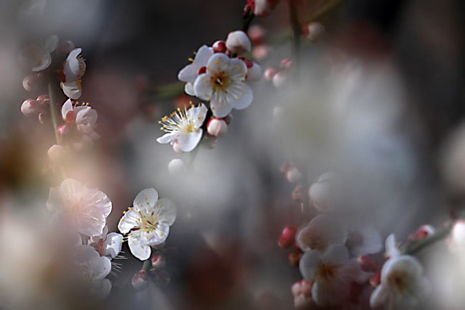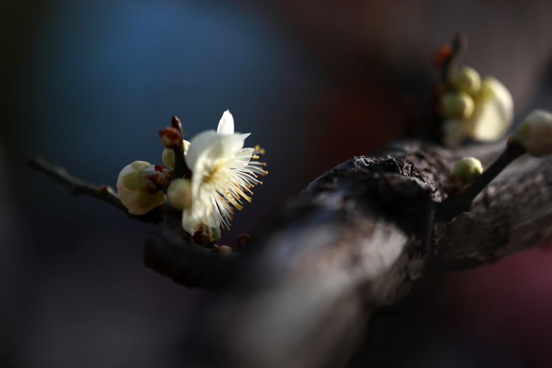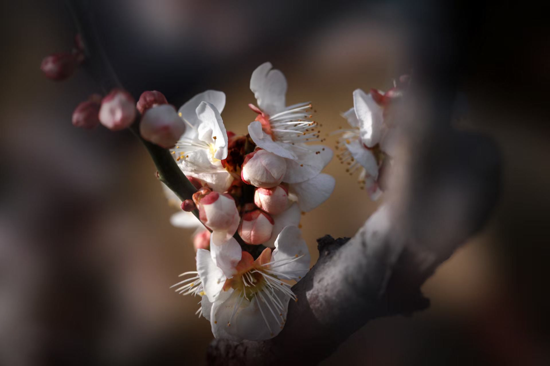 梅花迎着微凉春意傲然绽放,清雅花色搭配淡淡幽香,勾勒出早春最灵动的景致。